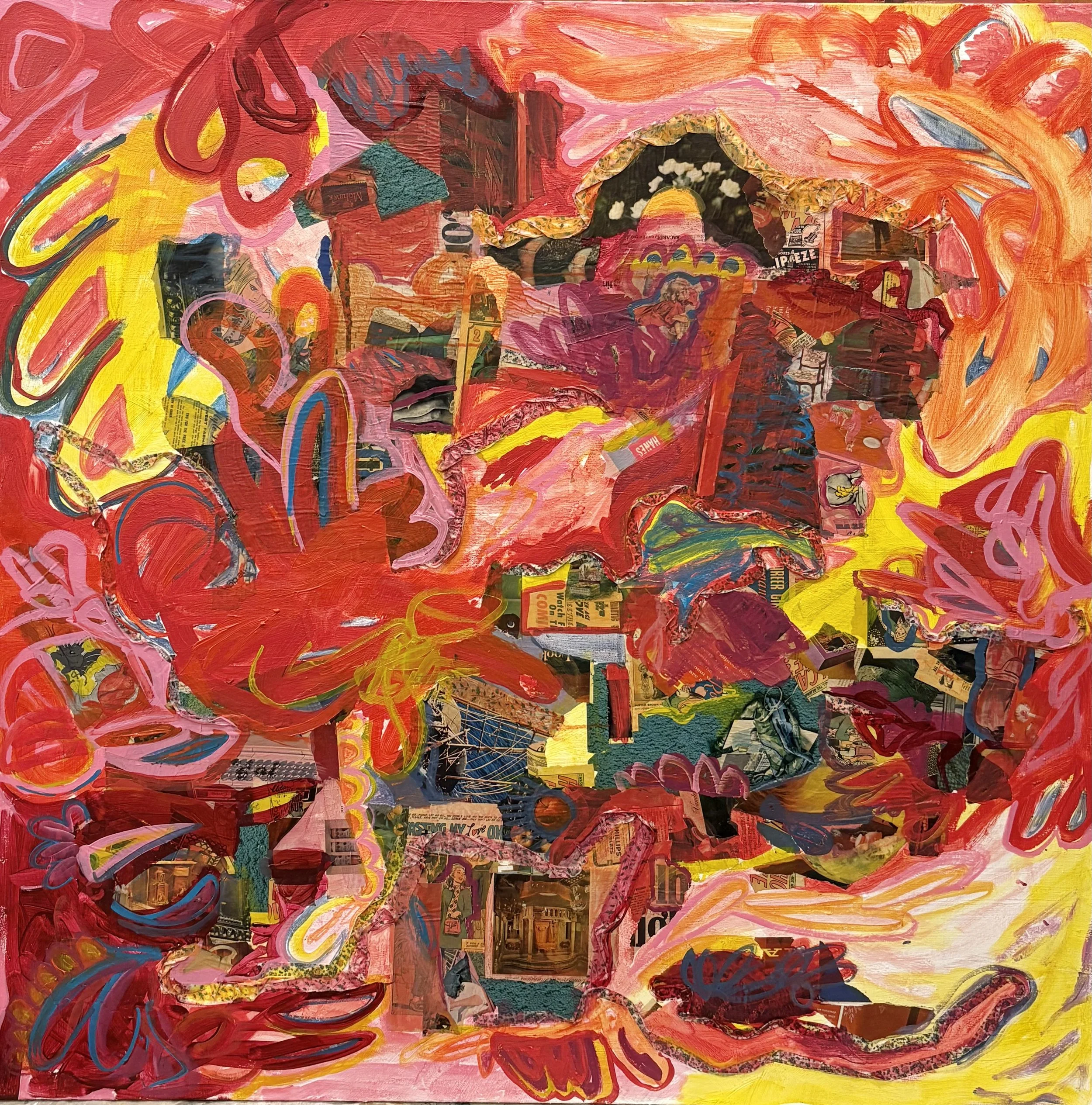 This piece is 48”x 48”x 2” Acrylic on Canvas.